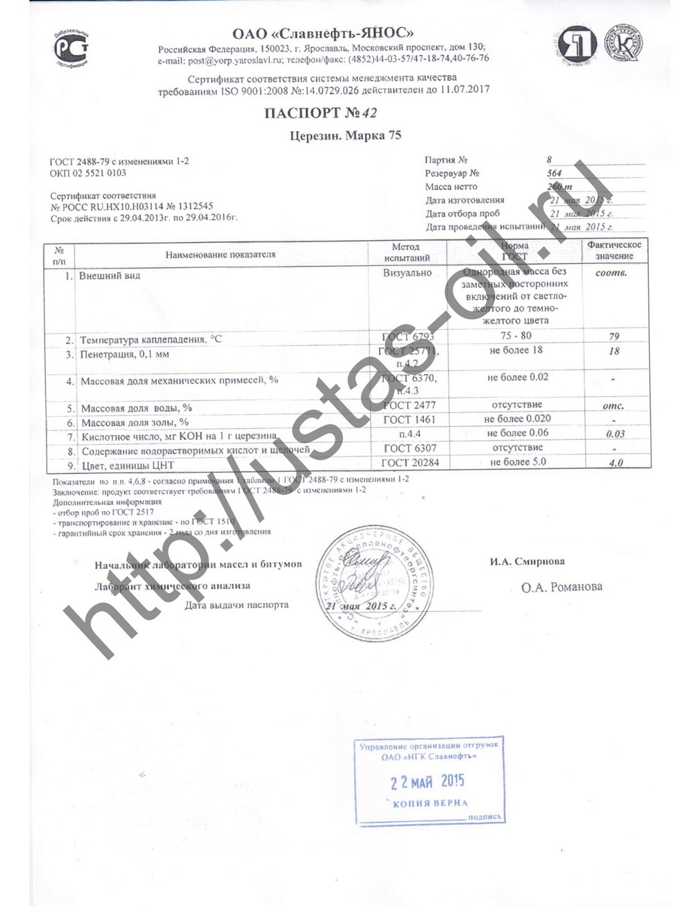 Церезин М-75 - воскообразное вещество желтого цвета. Фасовка - брикеты по 13 кг уложенных на поддоне.