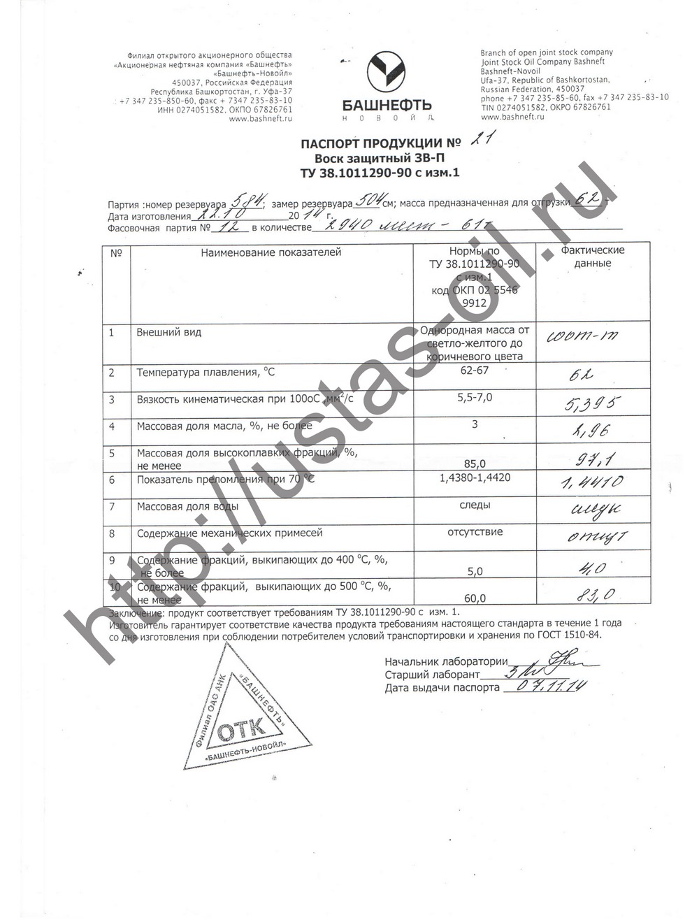 Защитный воск парафиновый (ЗВ-П) фасован в брикеты по 22 кг.